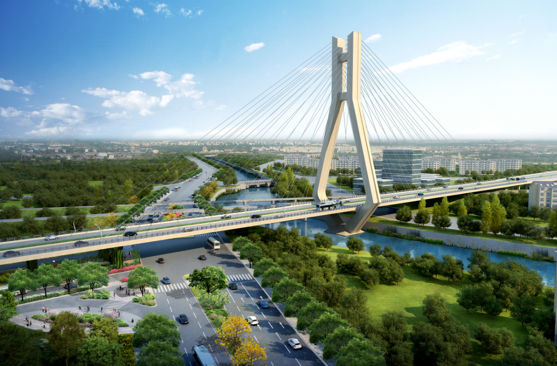 龍巖大道高架橋項(xiàng)目為省、市重點(diǎn)建設(shè)項(xiàng)目,是龍巖中心城市連接南北、溝通新老城區(qū)的重要樞紐,項(xiàng)目位于龍巖市南北交通中心軸和景觀軸線龍巖大道上,全長(zhǎng)3395m,包含橋梁和地面道路兩大部分,其中橋梁工程總長(zhǎng)2329m,橋?qū)?6m,包含一座190+150m獨(dú)塔斜拉索鋼箱梁主橋(主橋?qū)?6.3m),全線設(shè)計(jì)為雙向六車(chē)道,設(shè)計(jì)車(chē)速60km/h,在西陂路及人民路處各設(shè)置上下匝道,跨越雙洋路、羅龍東路、人民路、登高西路、西陂路城市主干道,項(xiàng)目總投資約24億元。