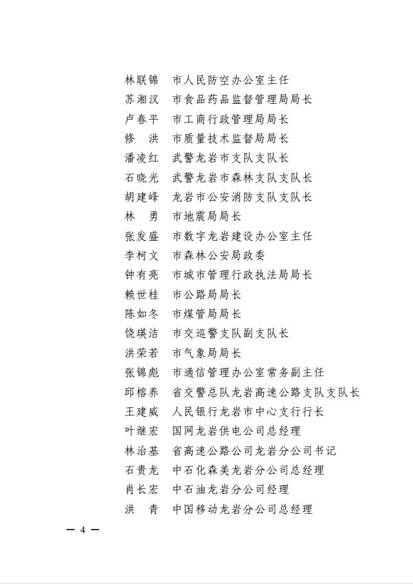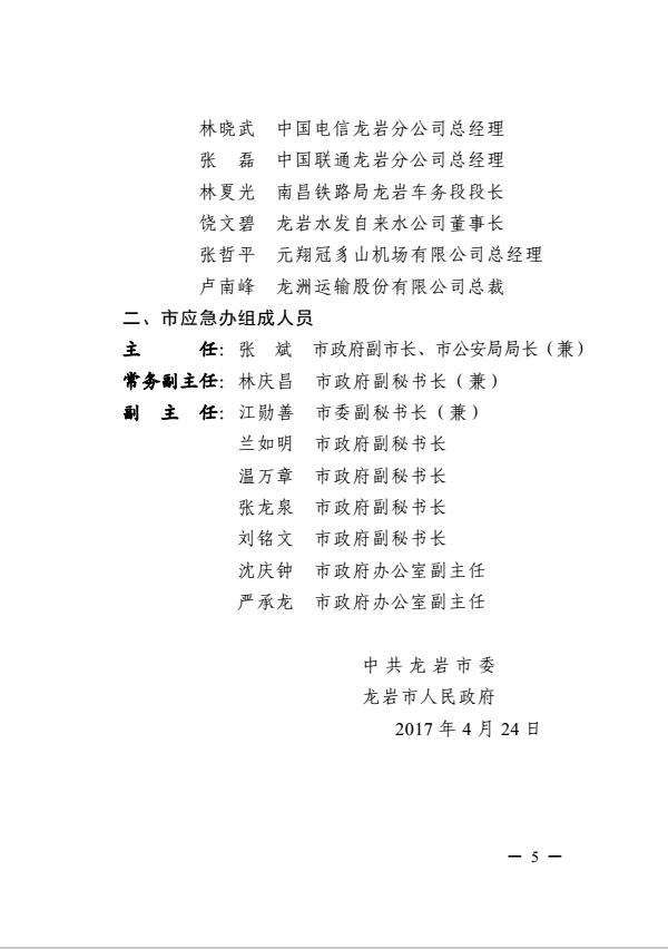 市委關(guān)于調(diào)整龍巖市突發(fā)事件應(yīng)急委員會及龍巖市突發(fā)事件應(yīng)急委員會辦公室成員的通知(巖委【2017】40號)