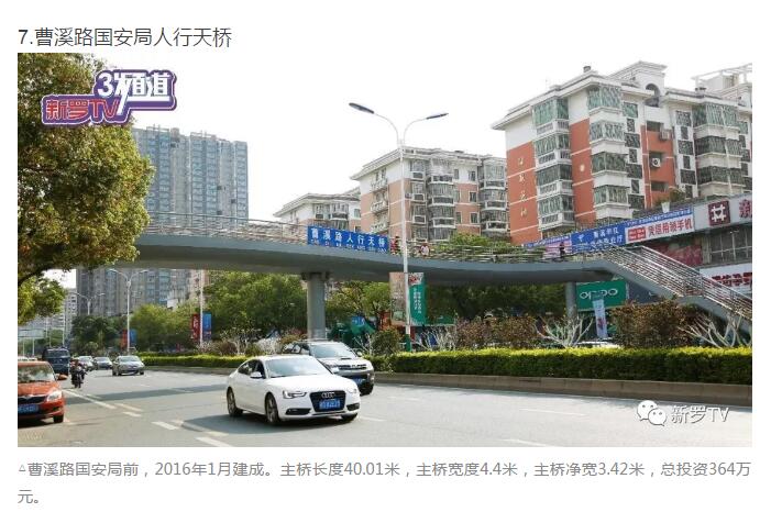 年來,市委、市政府加大市政基礎設施投入,大力推進人行天橋建設。截止2017年底,中心城市共興建20余座人行天橋。
