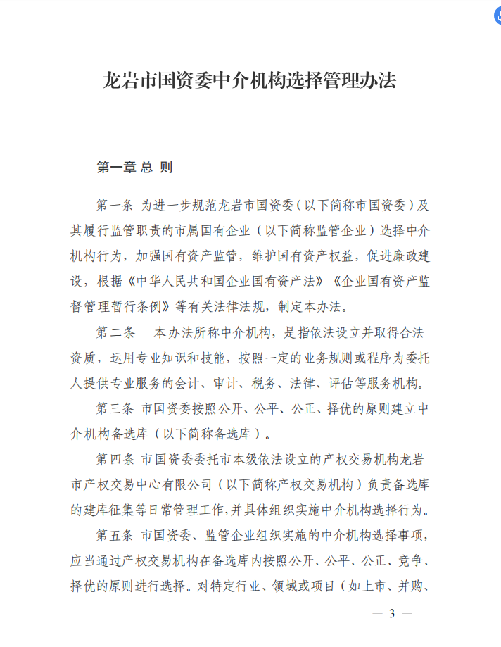 龍巖市國(guó)資委關(guān)于印發(fā)中介機(jī)構(gòu)選擇管理辦法的通知(龍國(guó)資[2020]45號(hào))